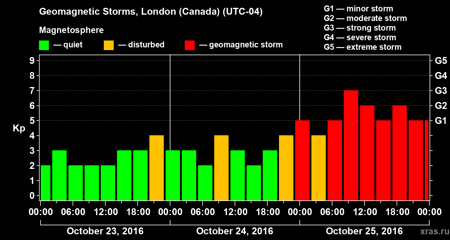Geomagnetic storms in London (Canada) — Oct 25, 2016