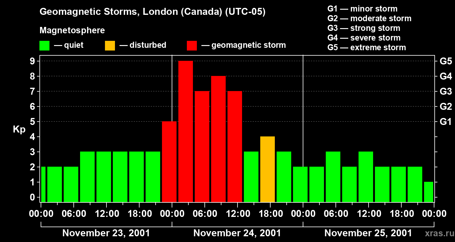 Geomagnetic storms in London (Canada) — Nov 25, 2001