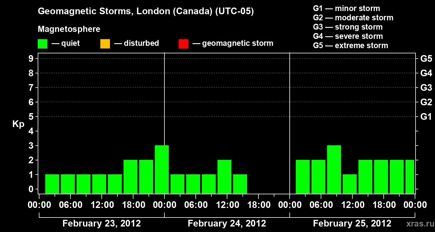 Geomagnetic storms in London (Canada) — Feb 25, 2012