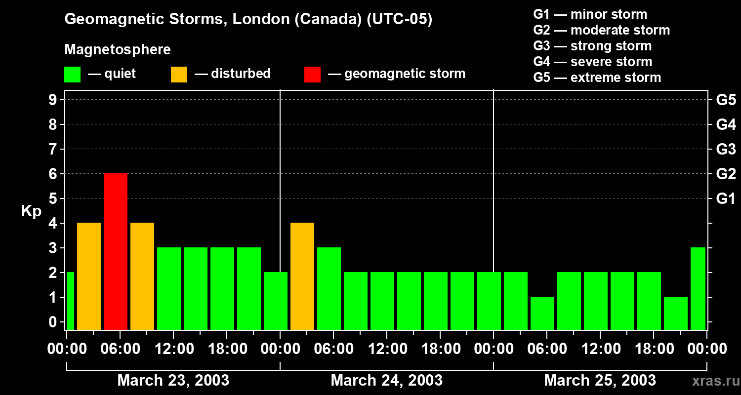 Geomagnetic storms in London (Canada) — Mar 25, 2003