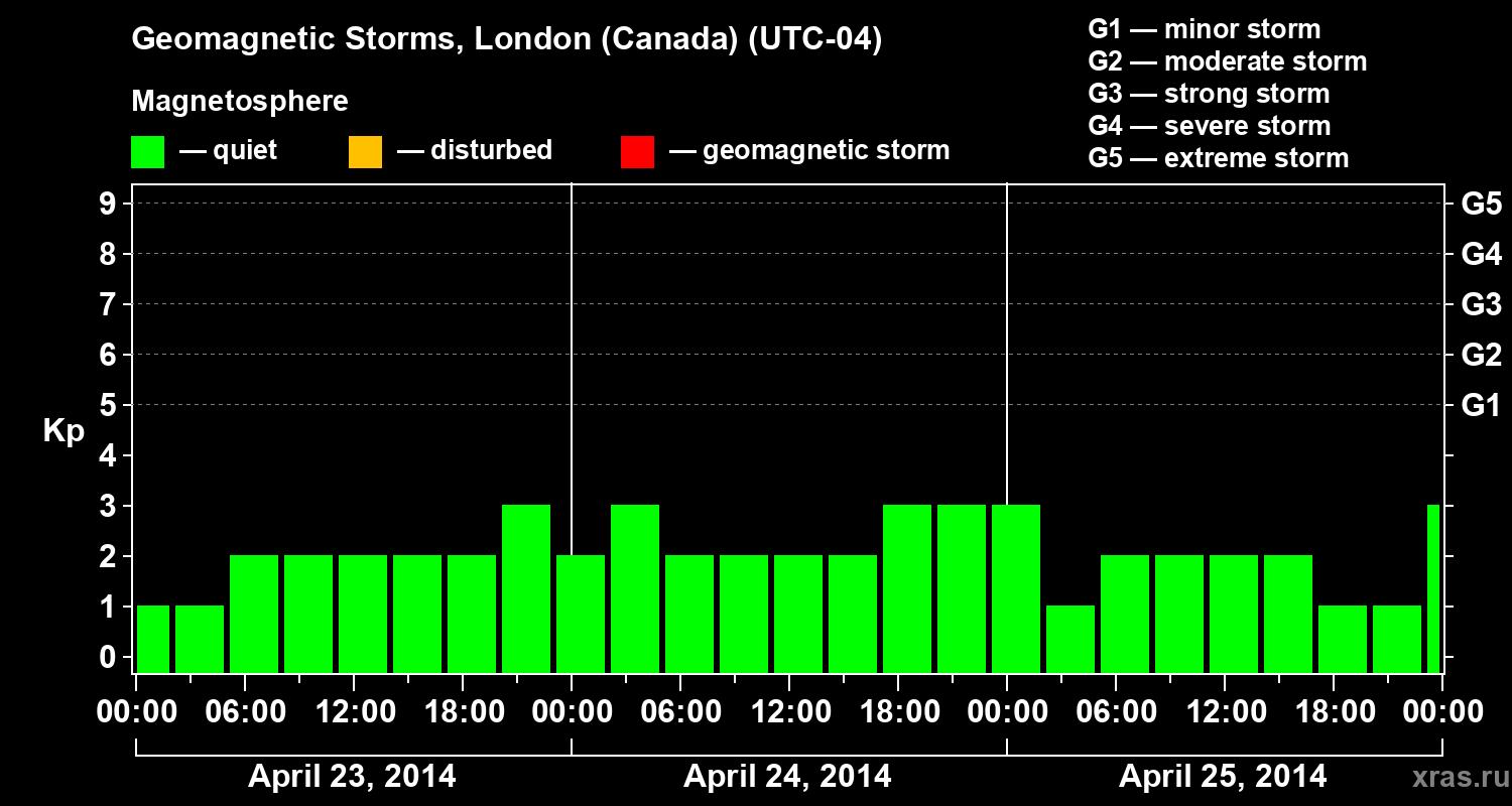 Geomagnetic storms in London (Canada) — Apr 25, 2014