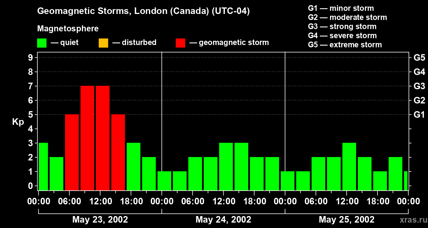 Geomagnetic storms in London (Canada) — May 25, 2002