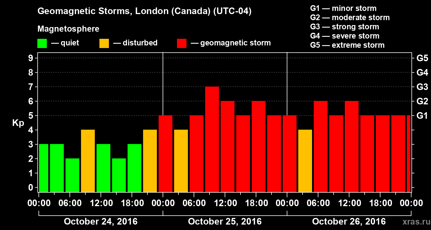 Geomagnetic storms in London (Canada) — Oct 26, 2016