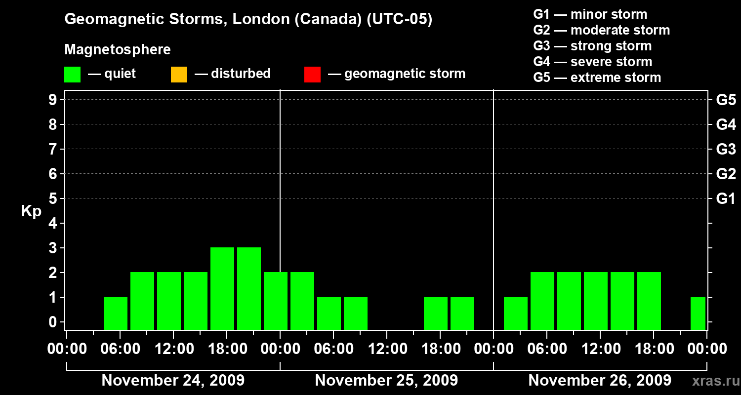 Geomagnetic storms in London (Canada) — Nov 26, 2009