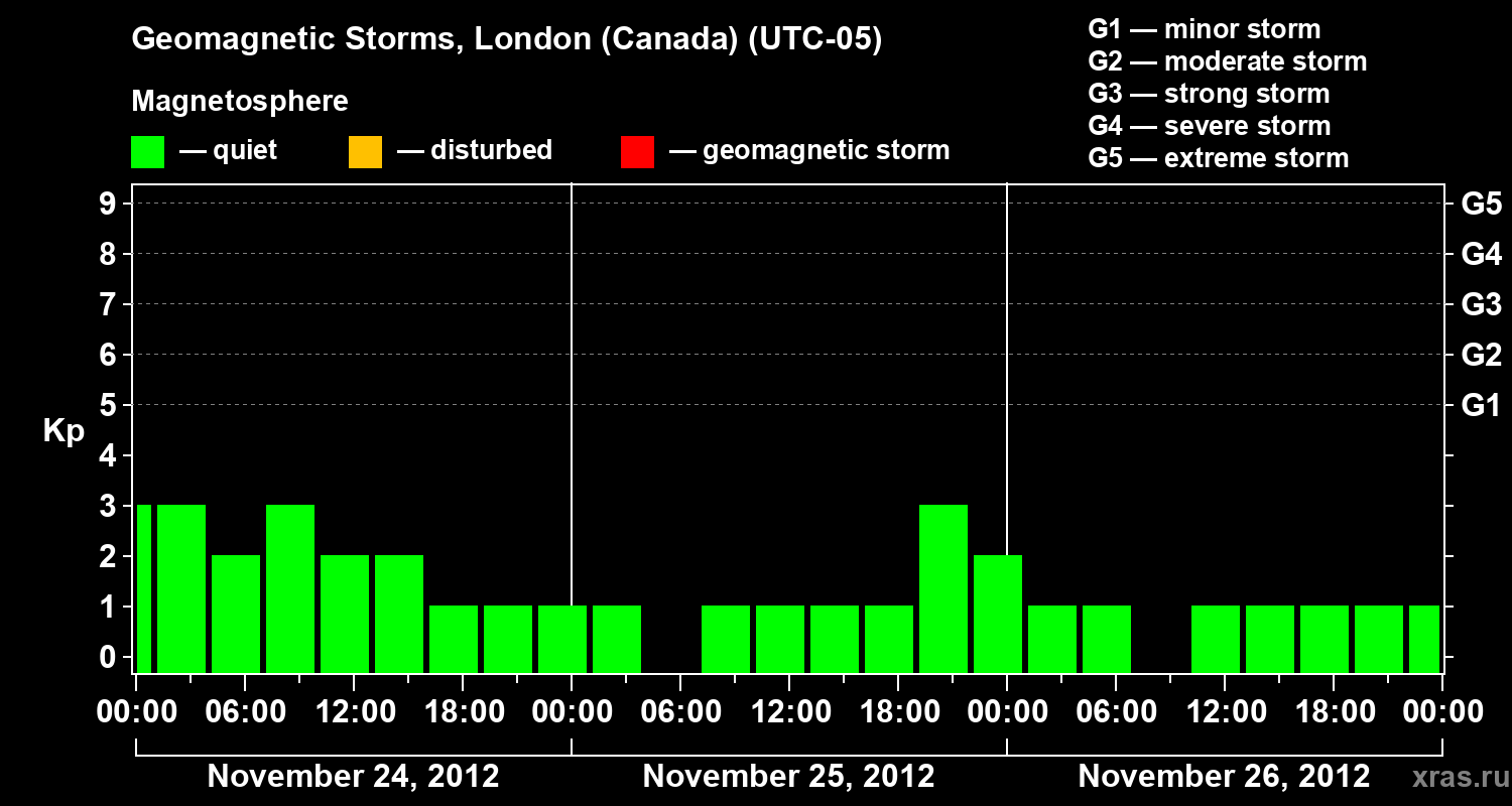 Geomagnetic storms in London (Canada) on Nov 26, 2012