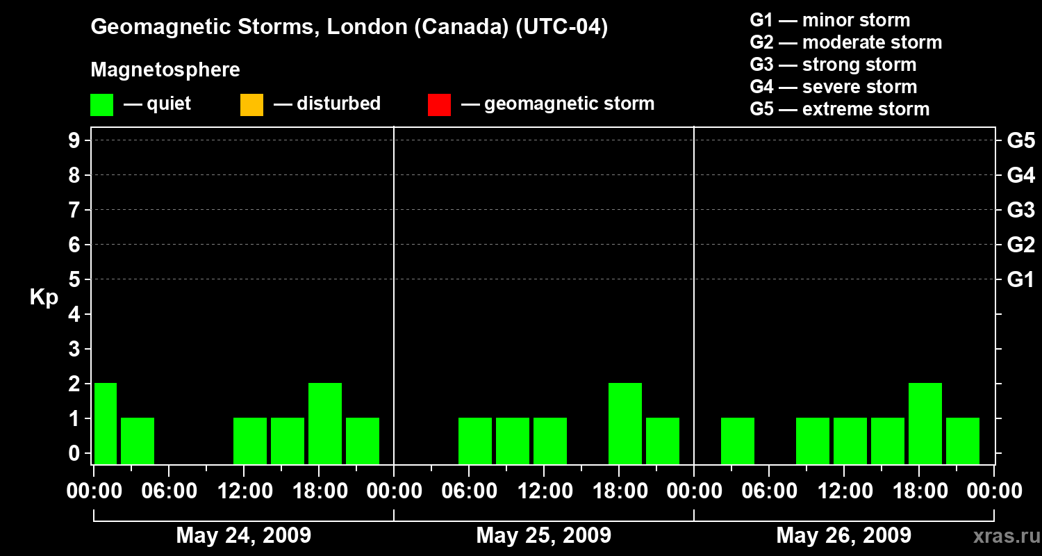 Geomagnetic storms in London (Canada) on May 26, 2009