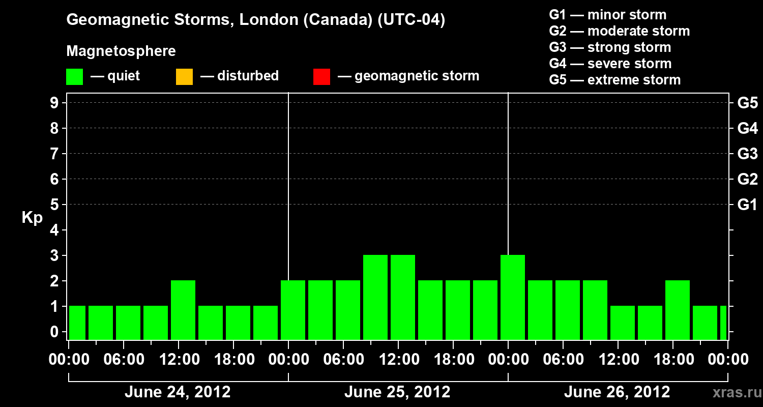 Geomagnetic storms in London (Canada) — Jun 26, 2012