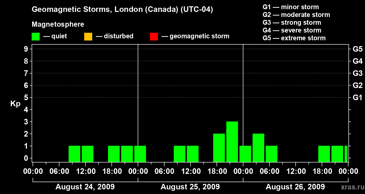 Geomagnetic storms in London (Canada) — Aug 26, 2009