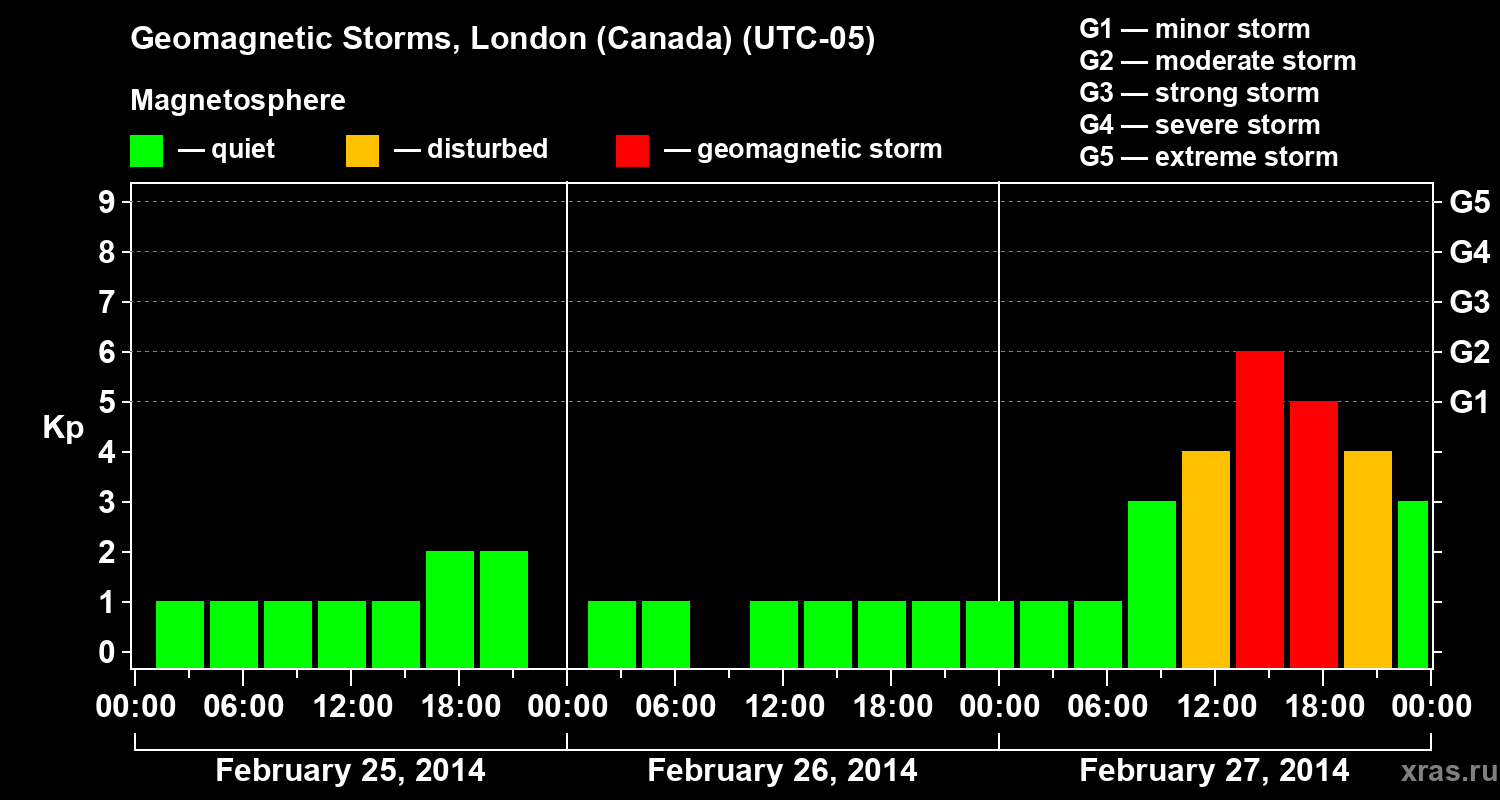 Geomagnetic storms in London (Canada) — Feb 27, 2014