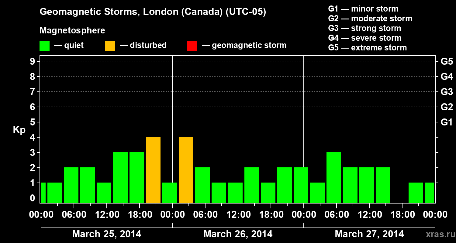 Geomagnetic storms in London (Canada) — Mar 27, 2014
