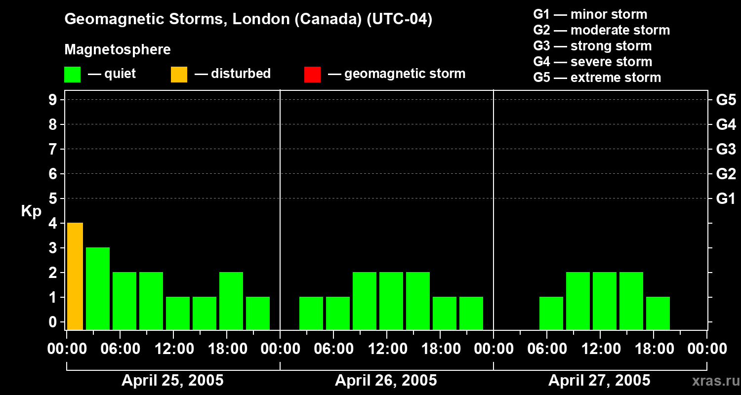 Geomagnetic storms in London (Canada) — Apr 27, 2005