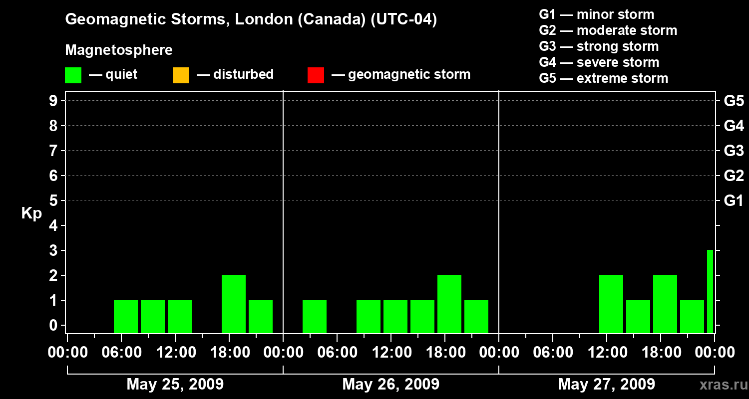 Geomagnetic storms in London (Canada) — May 27, 2009