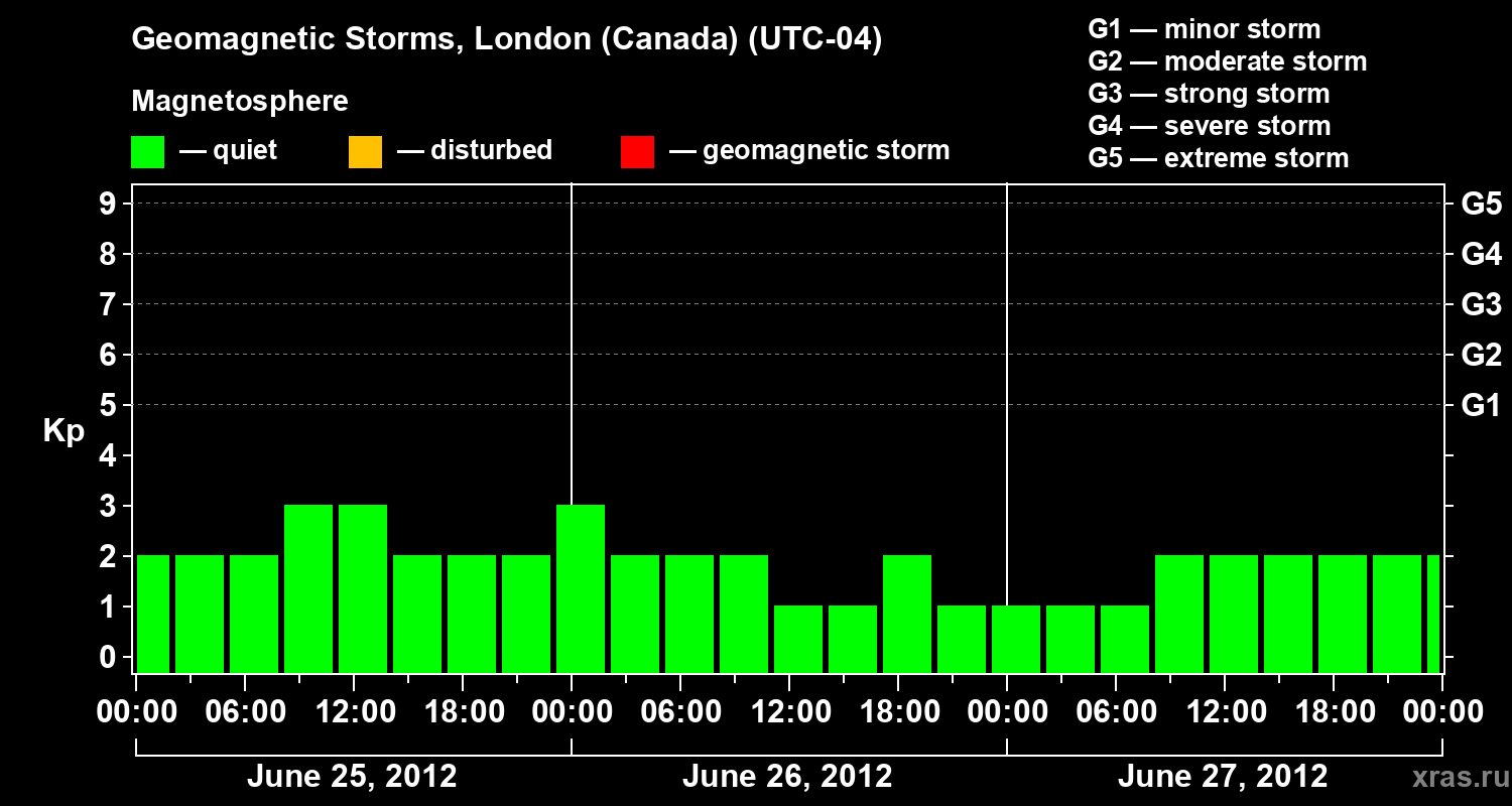 Geomagnetic storms in London (Canada) — Jun 27, 2012