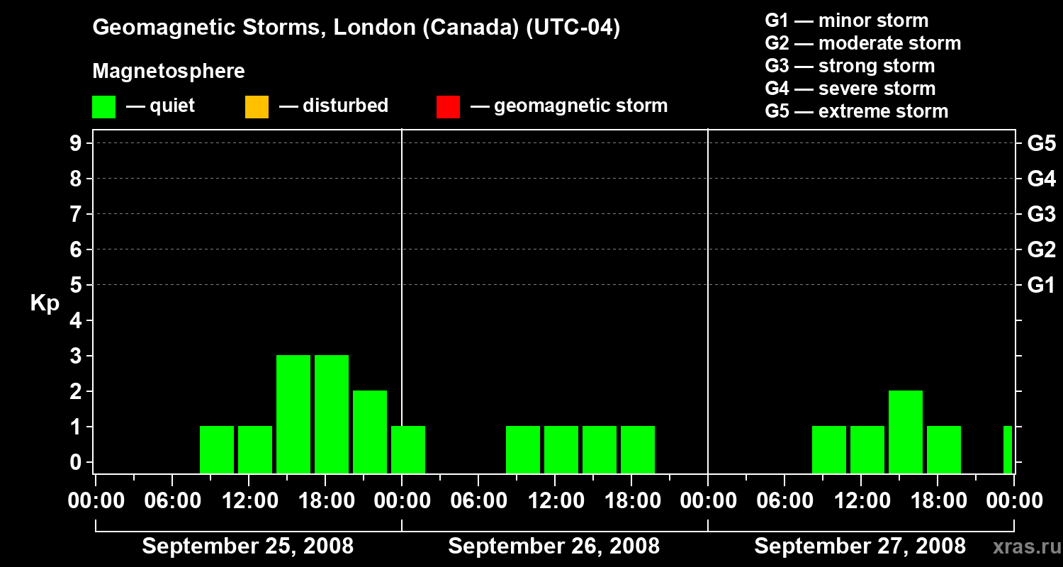 Geomagnetic storms in London (Canada) on Sep 27, 2008