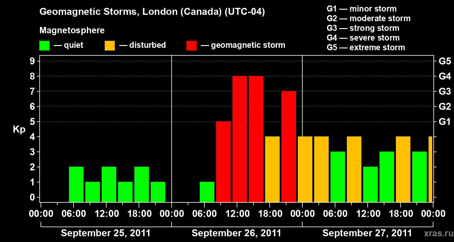 Geomagnetic storms in London (Canada) — Sep 27, 2011