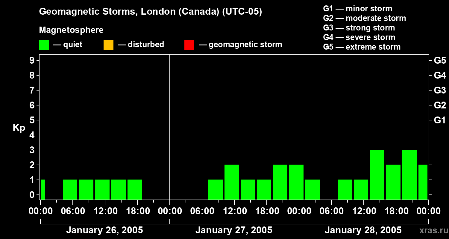 Geomagnetic storms in London (Canada) — Jan 28, 2005