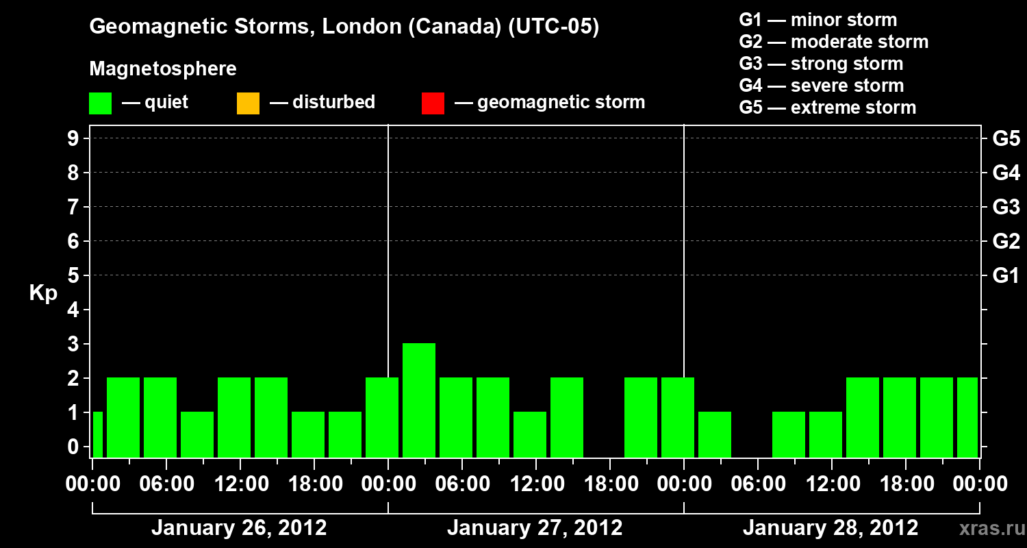 Geomagnetic storms in London (Canada) — Jan 28, 2012