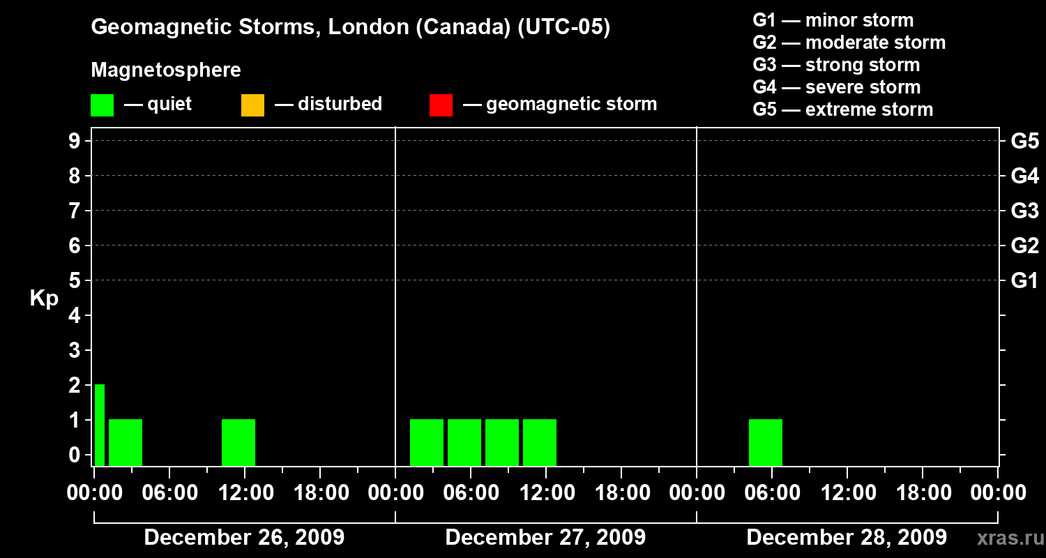 Geomagnetic storms in London (Canada) — Dec 28, 2009