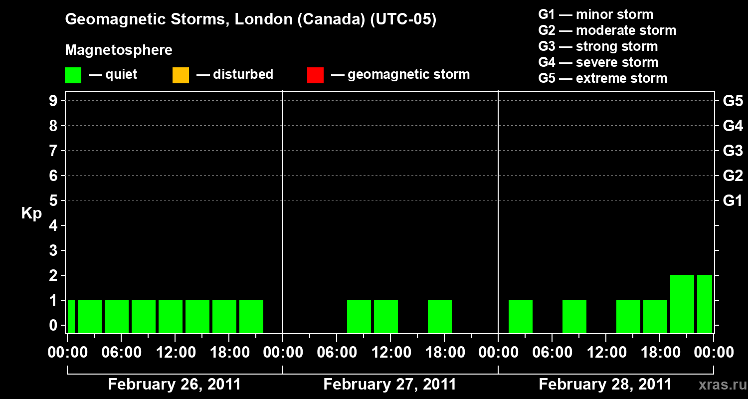 Geomagnetic storms in London (Canada) — Feb 28, 2011
