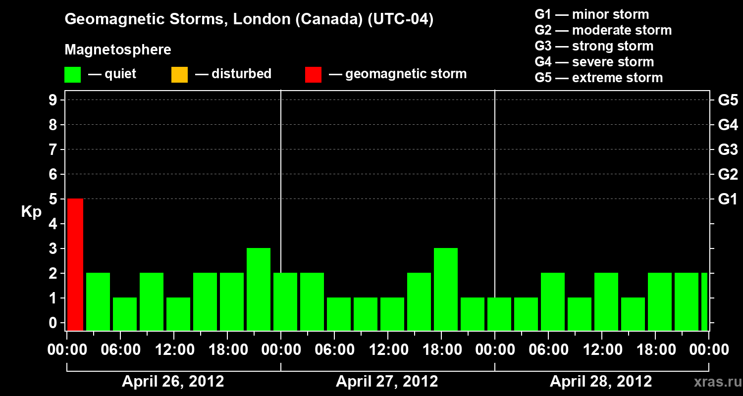 Geomagnetic storms in London (Canada) — Apr 28, 2012
