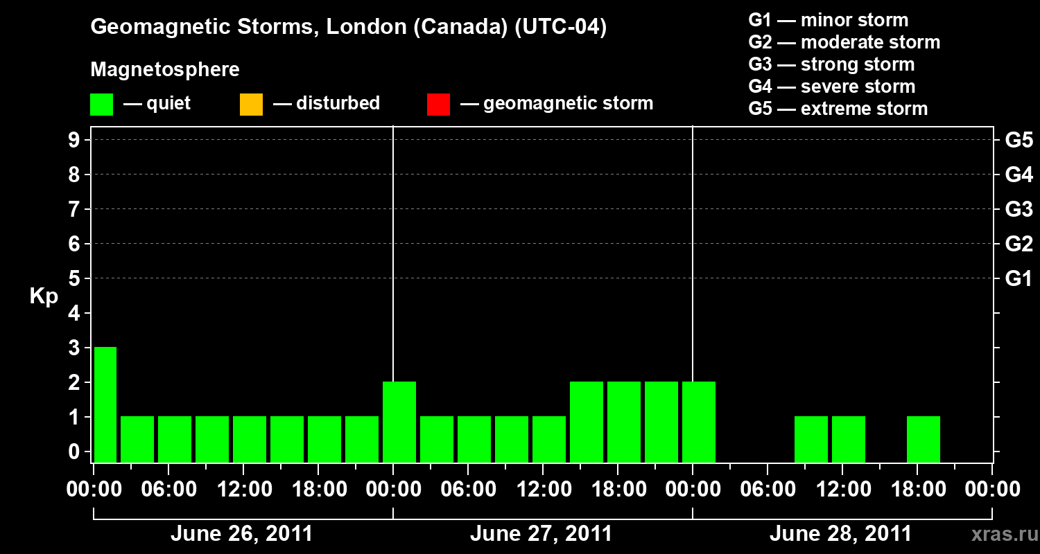 Geomagnetic storms in London (Canada) — Jun 28, 2011
