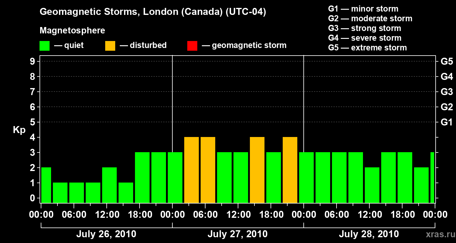 Geomagnetic storms in London (Canada) — Jul 28, 2010