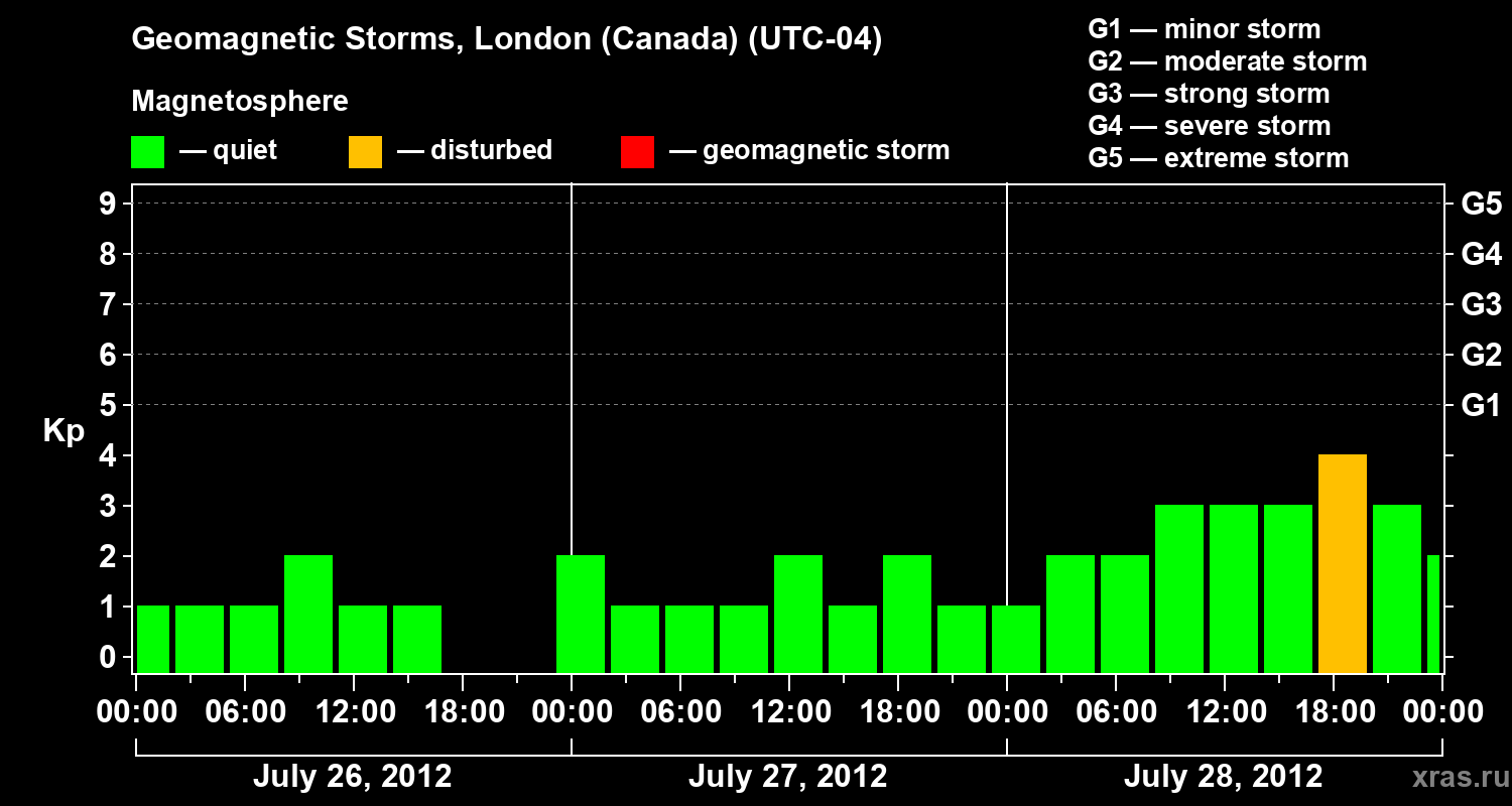 Geomagnetic storms in London (Canada) — Jul 28, 2012