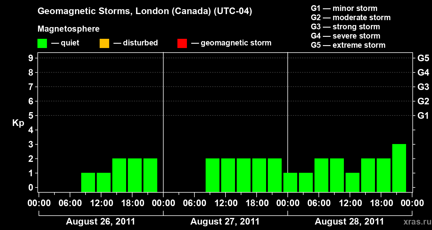 Geomagnetic storms in London (Canada) — Aug 28, 2011