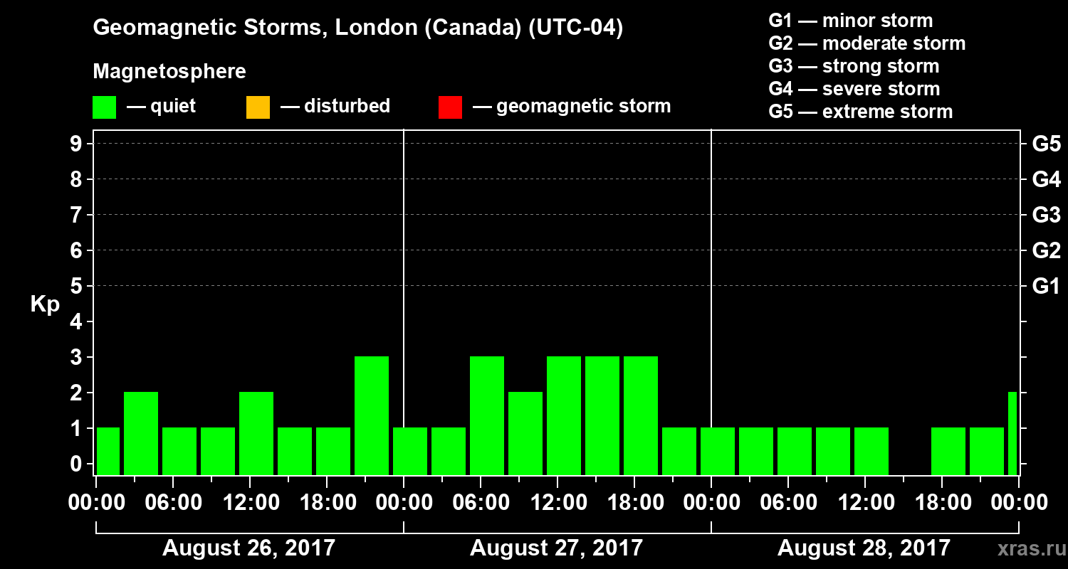 Geomagnetic storms in London (Canada) — Aug 28, 2017