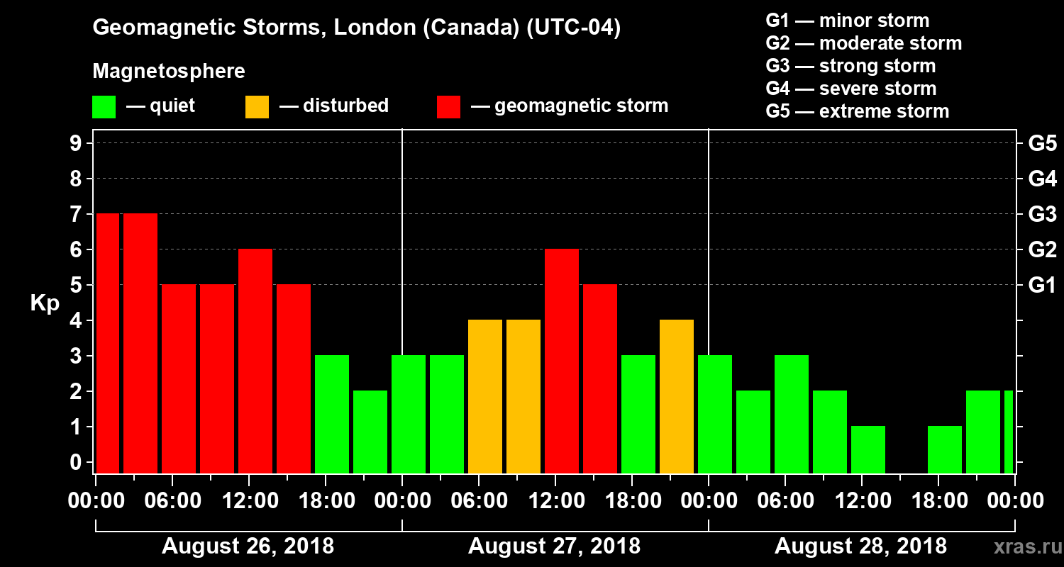 Geomagnetic storms in London (Canada) — Aug 28, 2018