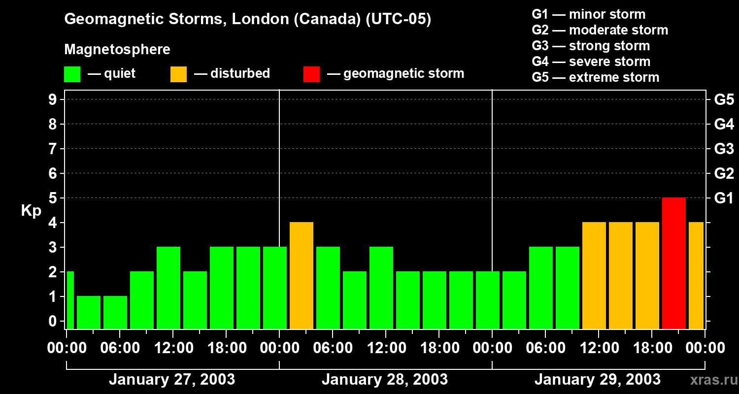 Geomagnetic storms in London (Canada) on Jan 29, 2003