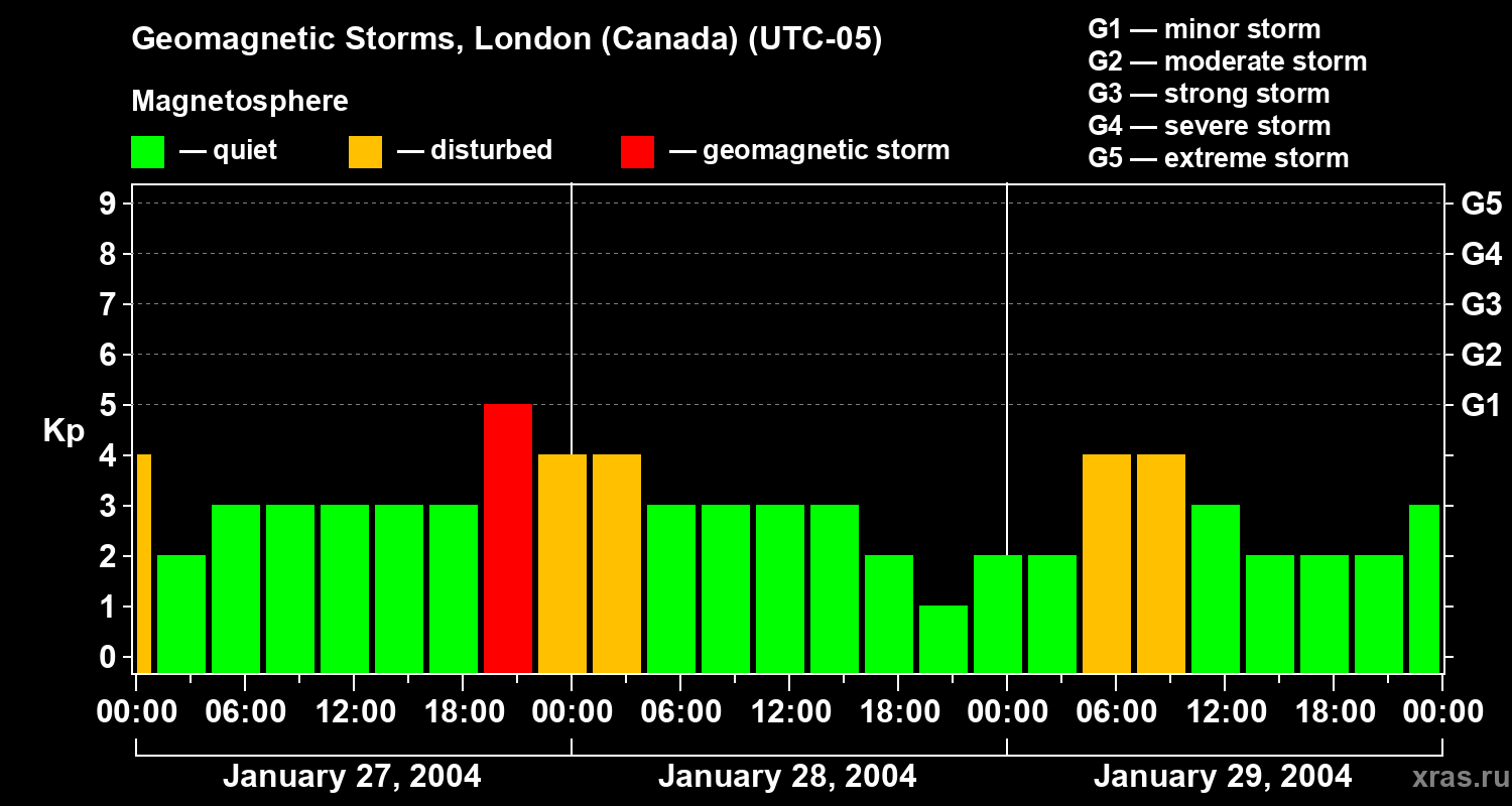 Geomagnetic storms in London (Canada) on Jan 29, 2004