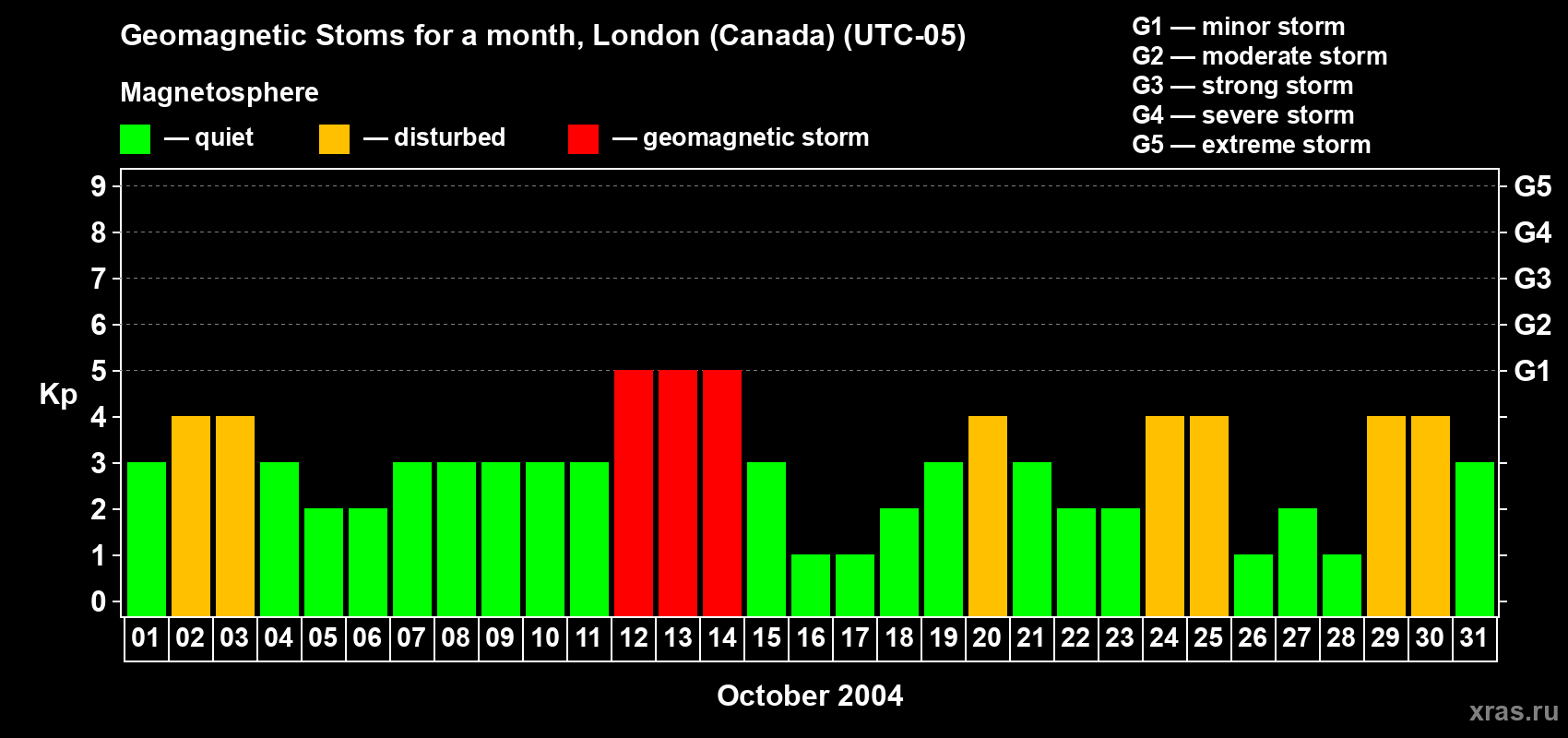 Geomagnetic storms in London (Canada) on Oct 29, 2004