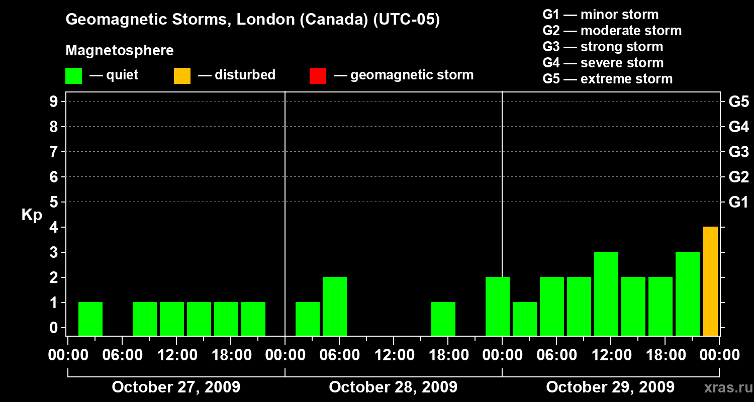 Geomagnetic storms in London (Canada) — Oct 29, 2009