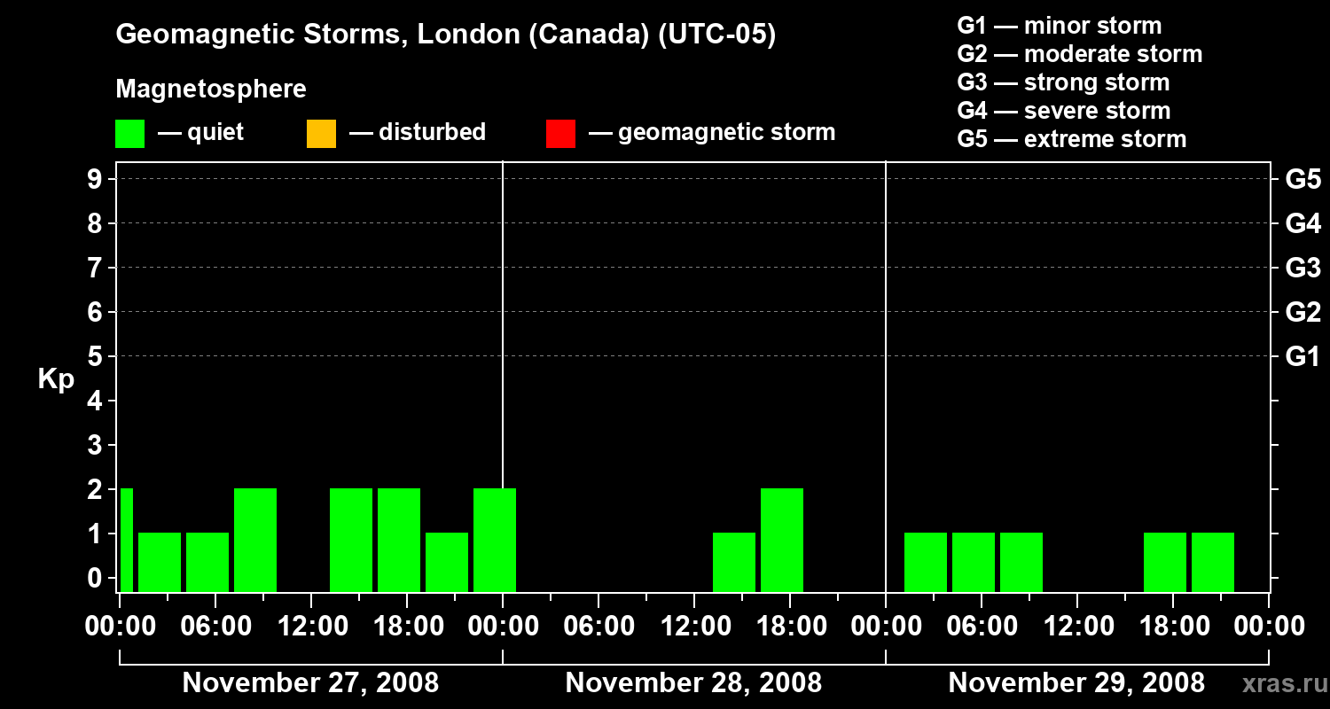 Geomagnetic storms in London (Canada) — Nov 29, 2008