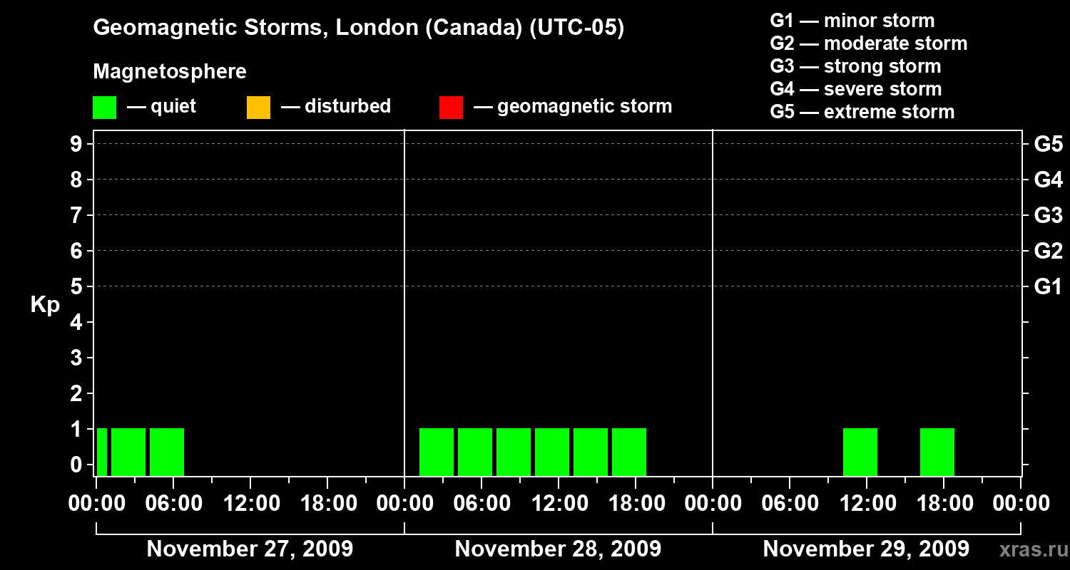 Geomagnetic storms in London (Canada) — Nov 29, 2009