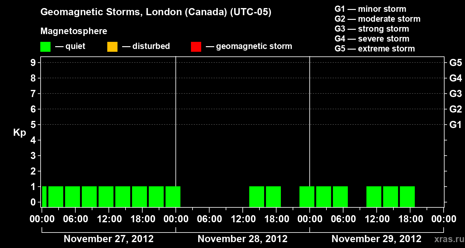 Geomagnetic storms in London (Canada) — Nov 29, 2012