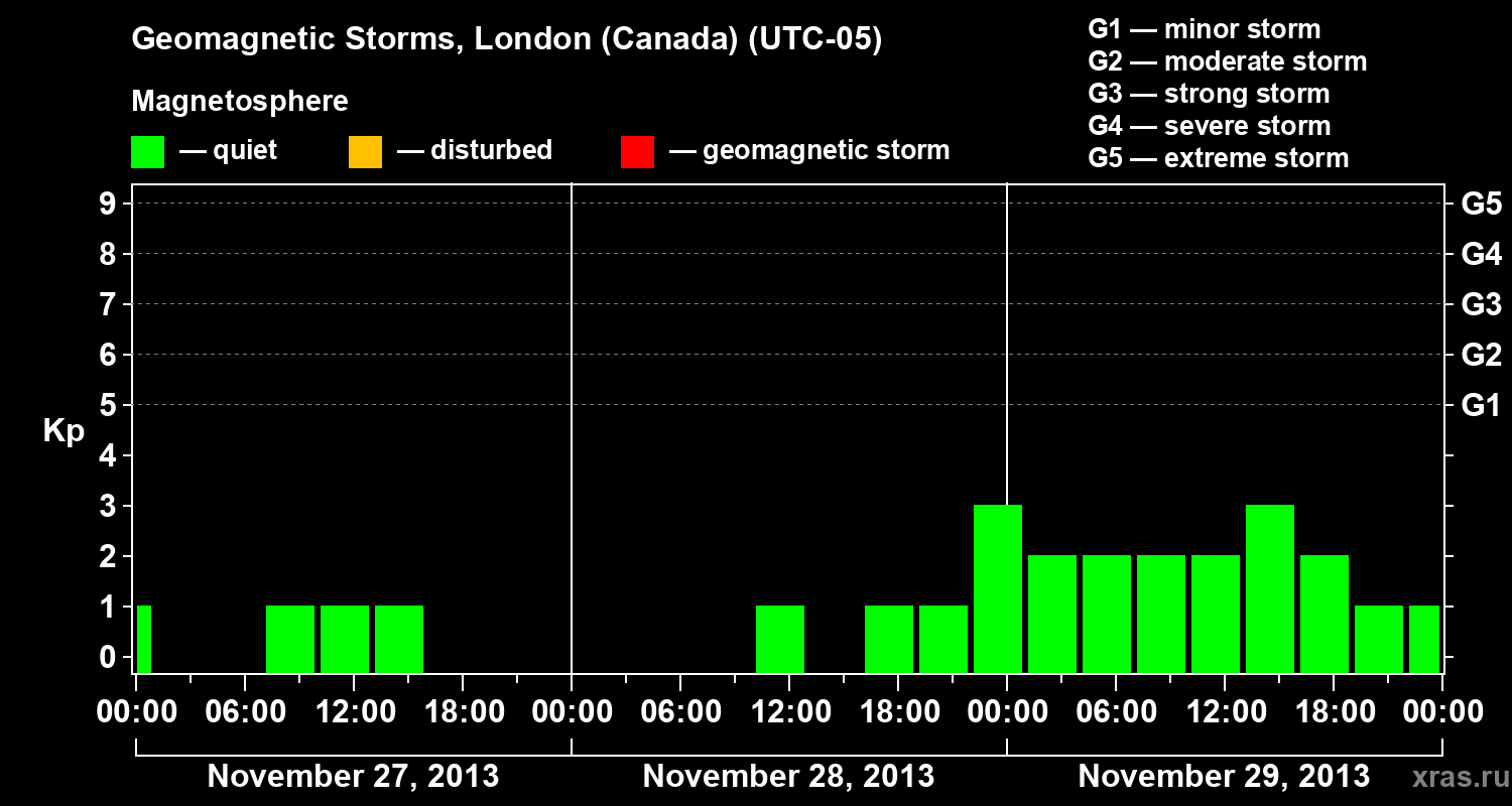 Geomagnetic storms in London (Canada) — Nov 29, 2013