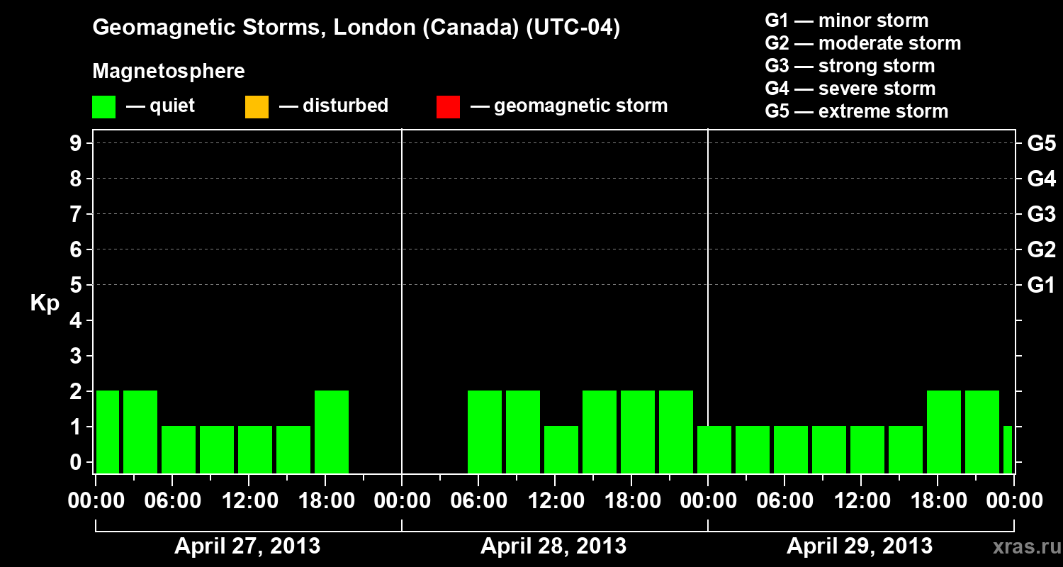 Geomagnetic storms in London (Canada) — Apr 29, 2013