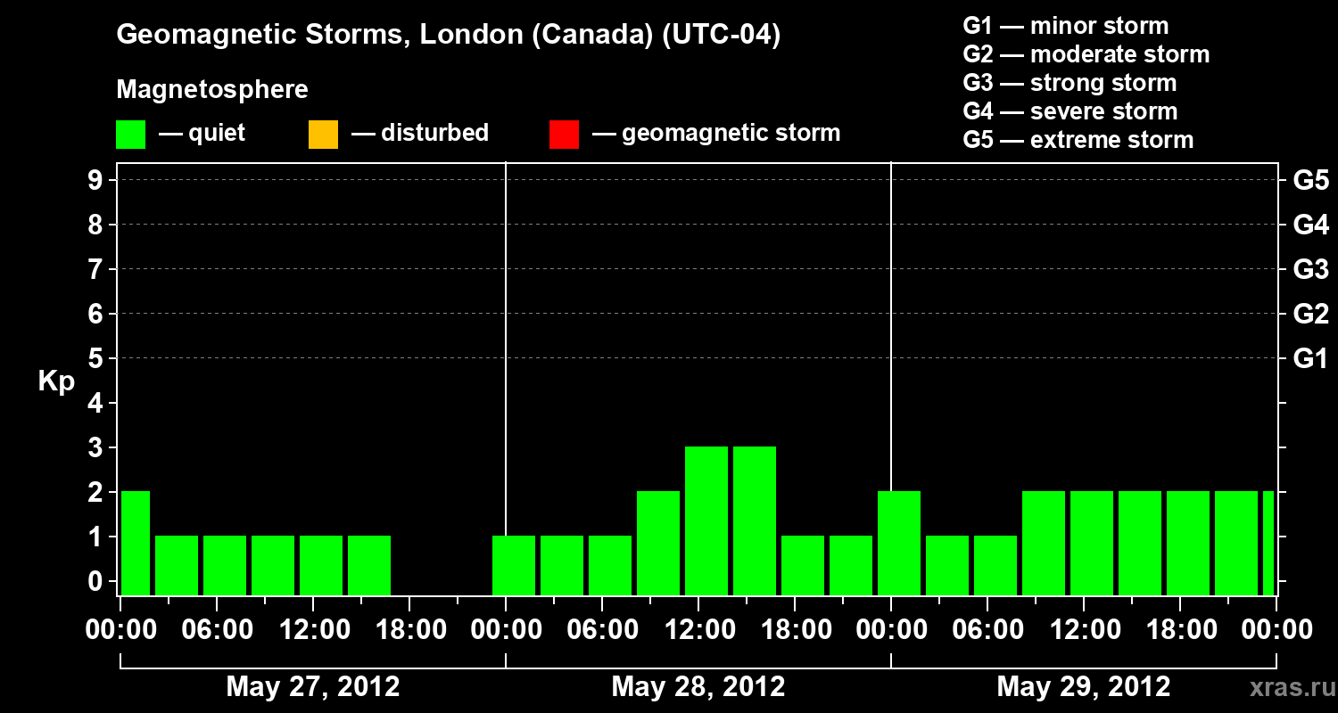 Geomagnetic storms in London (Canada) — May 29, 2012