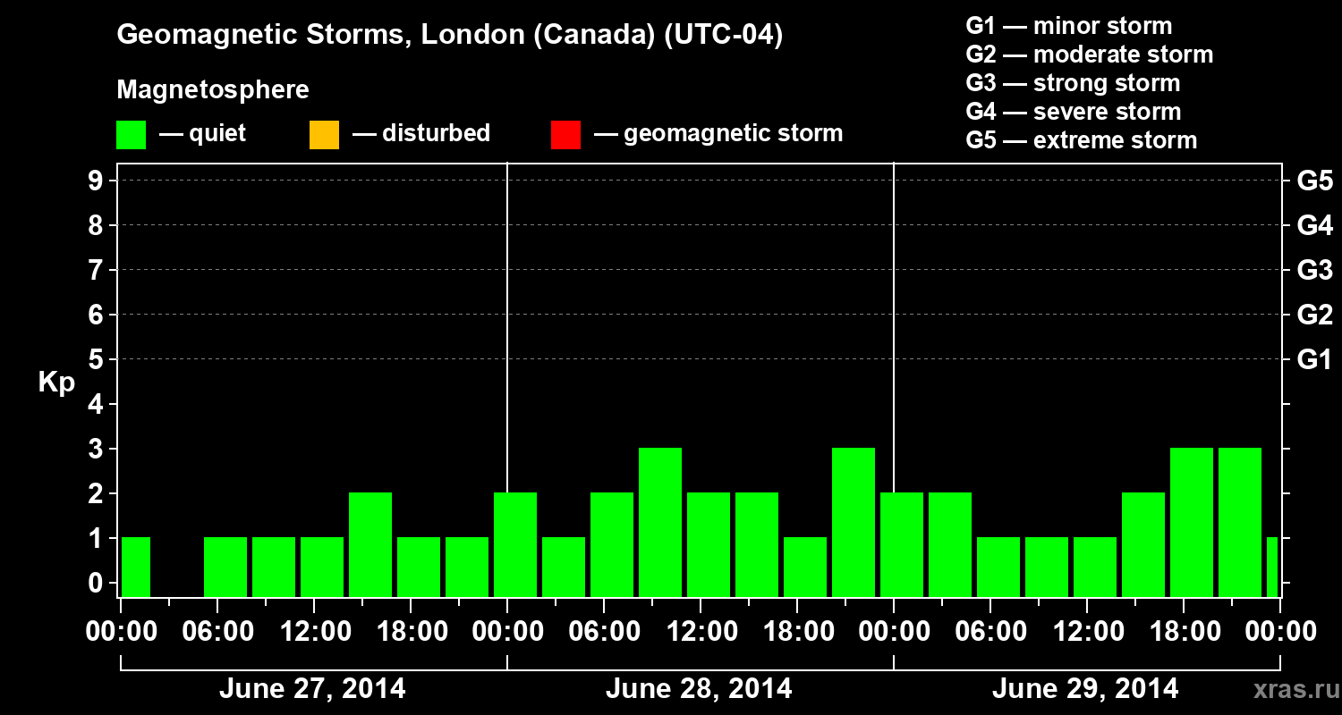 Geomagnetic storms in London (Canada) — Jun 29, 2014