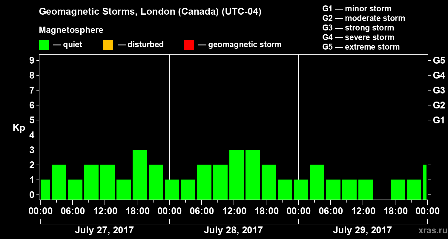Geomagnetic storms in London (Canada) — Jul 29, 2017