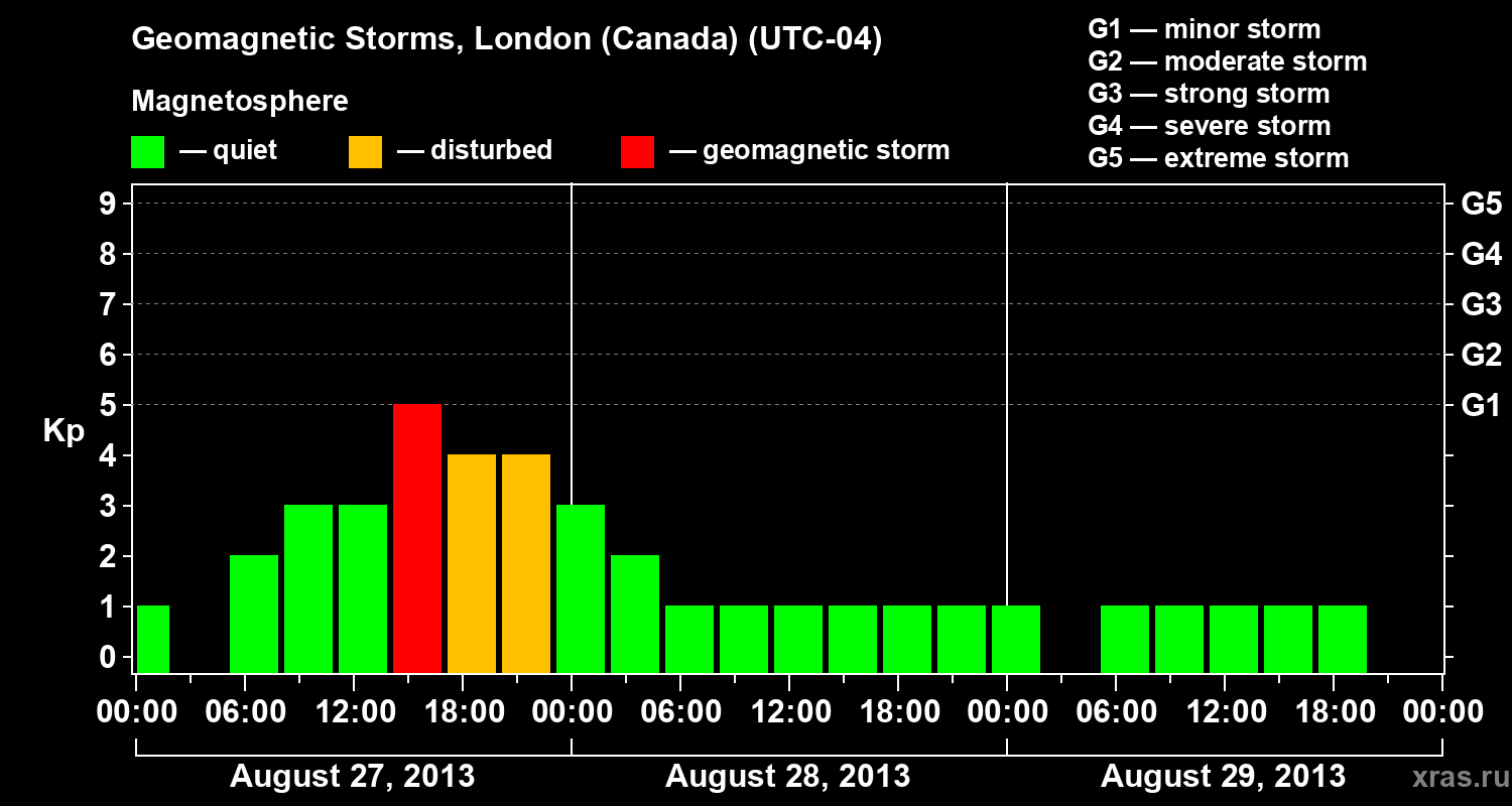 Geomagnetic storms in London (Canada) — Aug 29, 2013