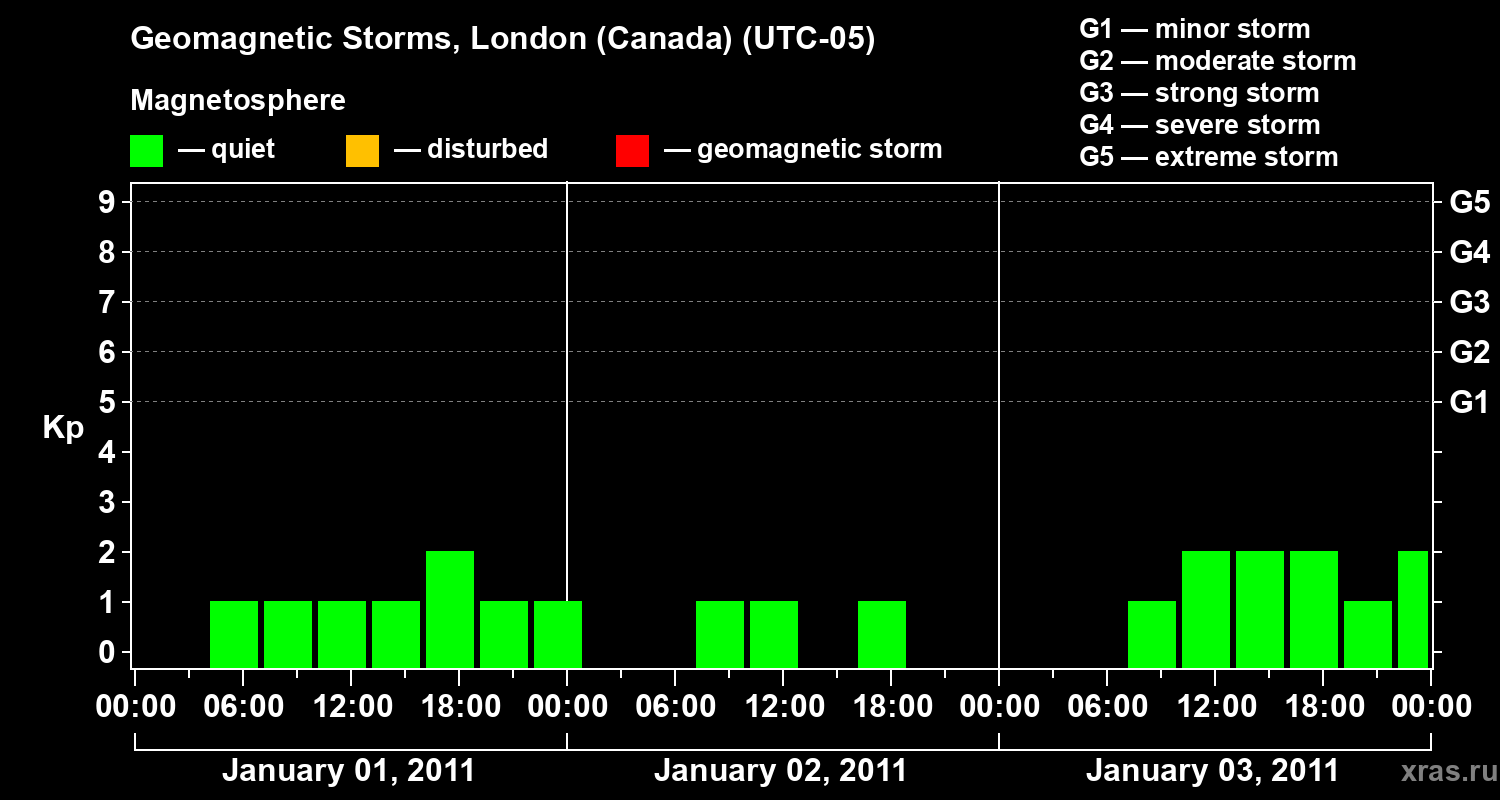 Geomagnetic storms in London (Canada) — Jan 03, 2011