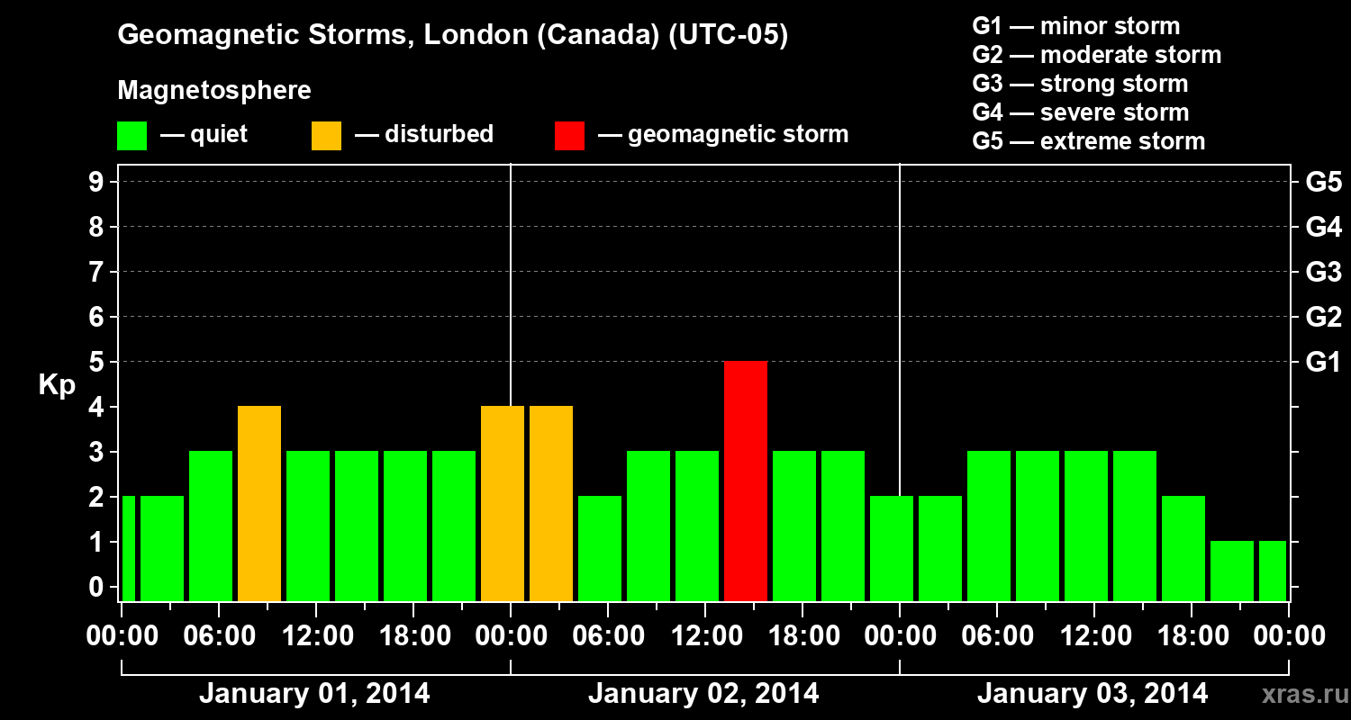 Geomagnetic storms in London (Canada) — Jan 03, 2014