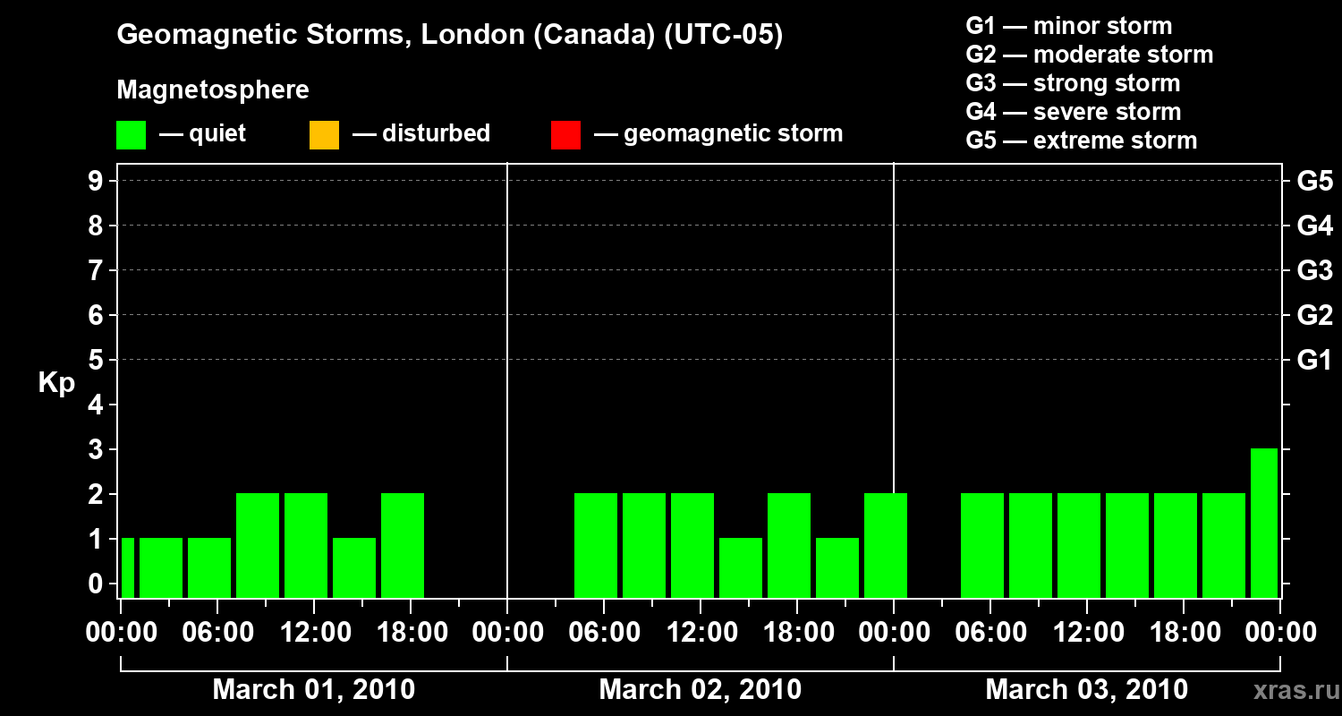 Geomagnetic storms in London (Canada) on Mar 03, 2010