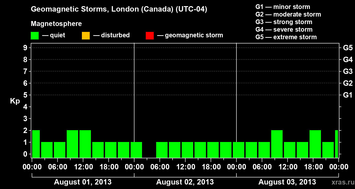 Geomagnetic storms in London (Canada) — Aug 03, 2013