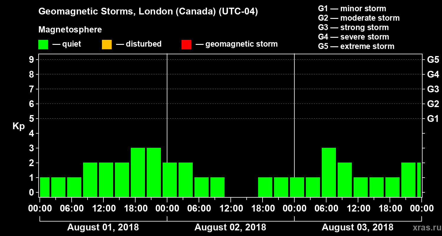 Geomagnetic storms in London (Canada) — Aug 03, 2018