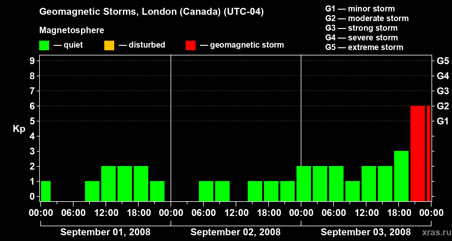 Geomagnetic storms in London (Canada) — Sep 03, 2008