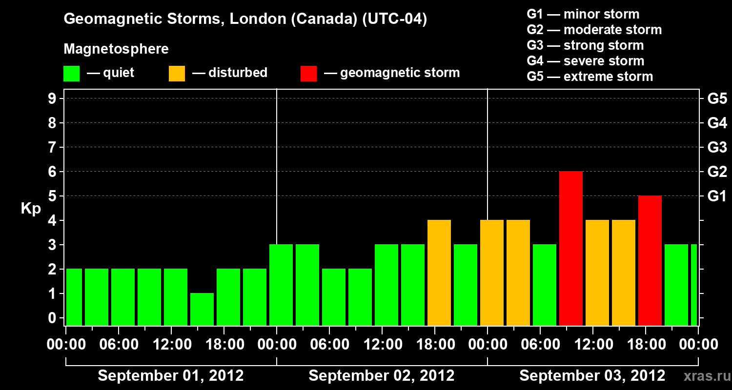 Geomagnetic storms in London (Canada) — Sep 03, 2012
